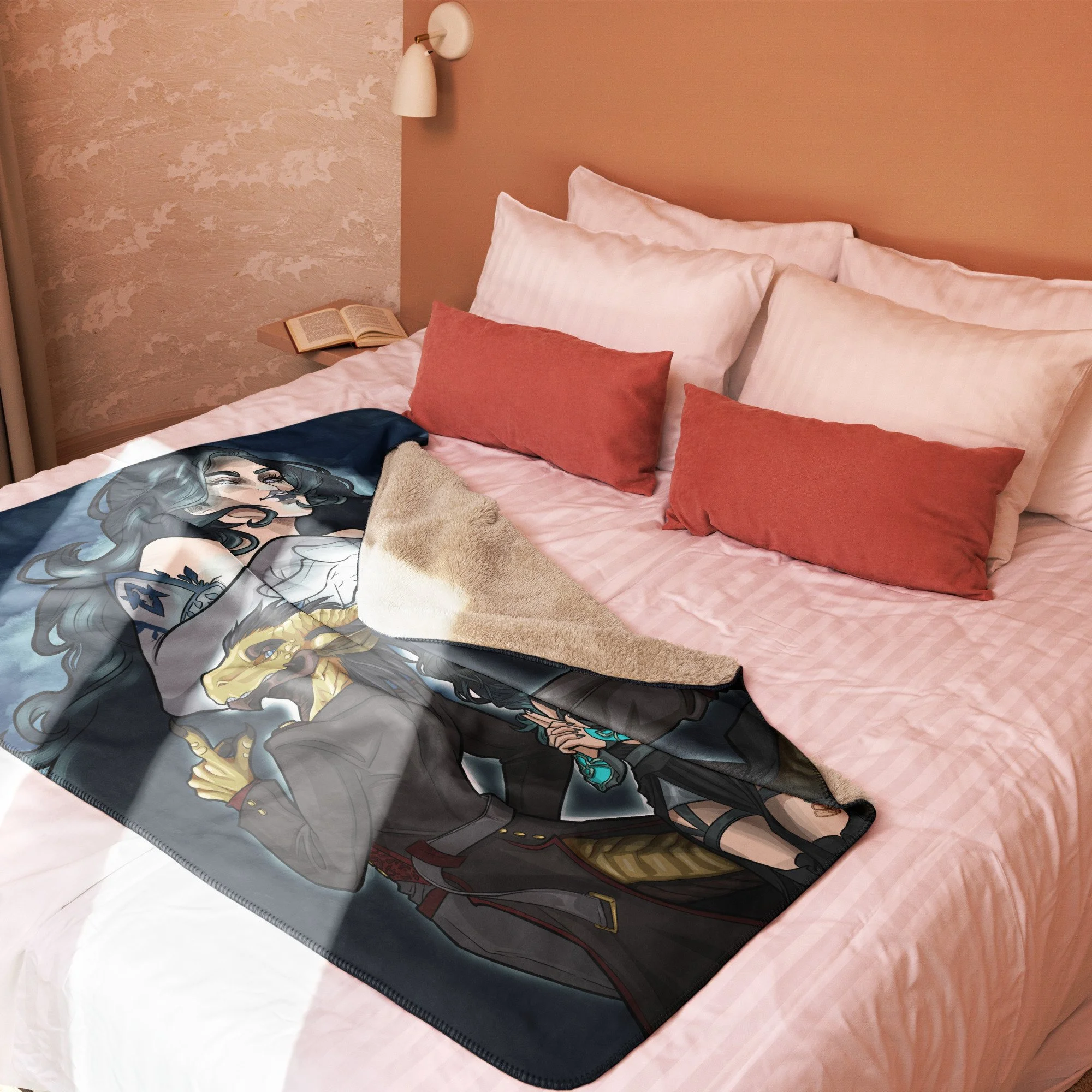 This exquisite sherpa blanket is crafted from 100% polyester fibers, offering a plush, velvety texture and exceptional softness. Whether you're curled up in a hidden sanctum, plotting your next move beneath fallen skies, or simply seeking warmth on a cold night, this blanket delivers unmatched coziness and style.